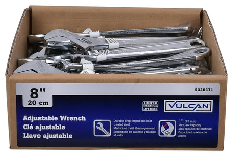 Vulcan WC917-04 Adjustable Wrench, 8 in OAL, Steel, Chrome, Pack of 30