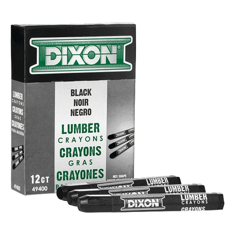 Dixon Ticonderoga 49400 Lumber Crayon, Black, 1/2 in Dia, 4-1/2 in L, Pack of 12