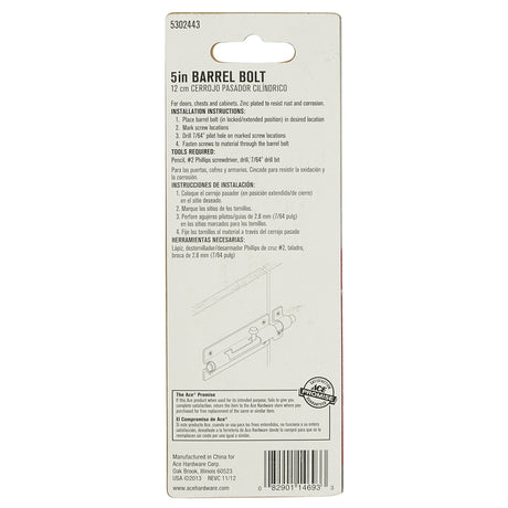 Ace 5 in. L Zinc-Plated Steel Barrel Bolt 1 pk