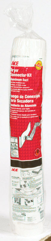 This Venting Kit inlcudes up to 8 feet of semi-rigid transition duct and two Hooker-Upper duct connectors with protectors to easily attach duct to the exhaust vent opening. This venting kit is easy to install. No clamps, tools or tape needed. Protects duct from being crushed when used in tight spaces. Made in the USA.