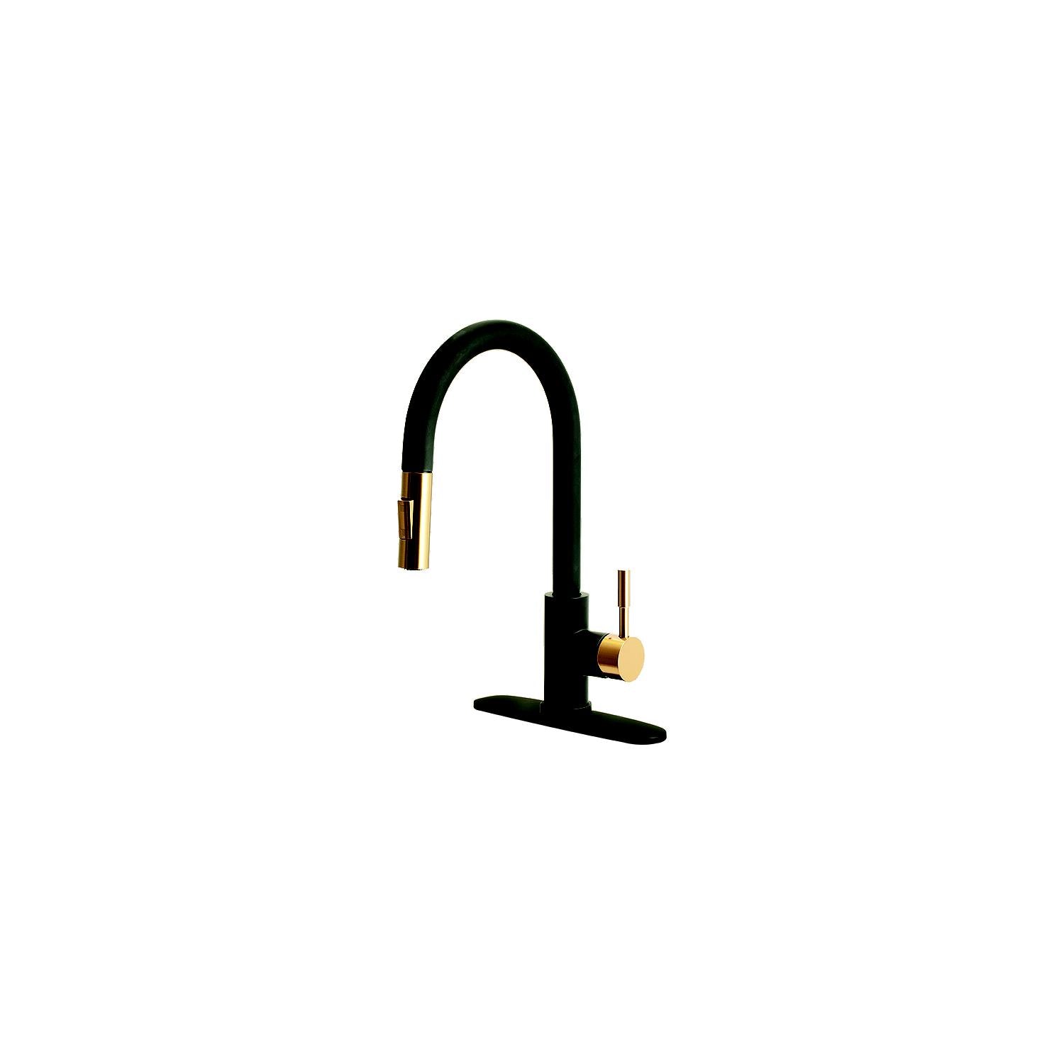 Dura Faucet DFMK530SLKMBRG Streamline Pull-Down Kitchen Faucet, Matte Black - Rose Gold
