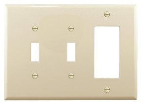 Mid size wallplates, polycarbonate combination 3-gang. Rugged construction reduces installation cost due to less plate breakage and resists bowing to provide a smooth, flat installation. Exclusive timesaving screw-catch feature that holds mounting screws captive and simplifies installation. High-gloss finish is soil resistant. Polycarbonate wallplates are virtually unbreakable, with high-structural rigidity, long-term form retention and superior impact and abrasion resistance. Matching mounting screws provided.