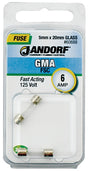 Jandorf 60688 Fast Acting Fuse, 6 A, 125 V, 10 kA Interrupt, Glass Body