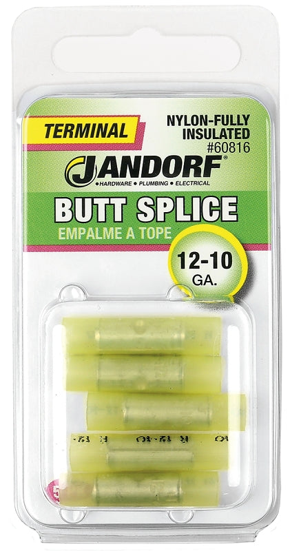 Jandorf 60816 Butt Splice Connector, 12 to 10 AWG Wire, Nylon Insulation, Copper Contact, Yellow