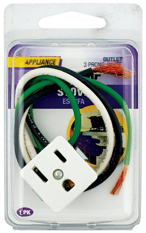 Jandorf Single Receptacle, 125 V, 15 A, 3 Pole, 3 Wires, 14 AWG Wire, White