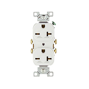 Eaton Straight Blade Duplex Receptacle, 250 VAC, 20 A, Number of Poles: 2, Number of Wires: 3, Wiring Type: Side, Wire Size: 14 to 10 AWG, NEMA Configuration: 6-20R, Operating Temperature: -4 to 158 deg F, Flush Mounting, PVC, White, Dimensions: 4.19 in H x 0.82 in W x 1.3 in D