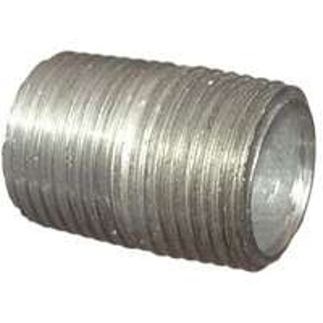 Made of steel, fully threaded. Indoor or outdoor. Use to connect two steel outlet boxes or other metal enclosures or to extend a length of threaded Rigid or IMC conduit. Bulk packed.