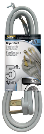 PowerZone ORD100305 Power Supply Dryer Cord, 10 AWG Cable, 5 ft L, 250 V, Gray