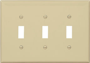Eaton PJ3V Wallplate, 7-1/4 in L, 6 in W, 3-Gang, Polycarbonate, Ivory, High-Gloss, Pack of 15