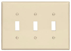 Eaton PJ3LA Switch Wallplate, 4.87 in L, 6-3/4 in W, 3-Gang, Polycarbonate, Light Almond, High-Gloss