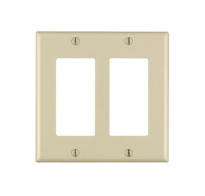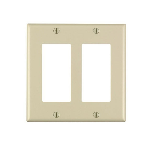 Leviton 80409-I Wallplate, 4-1/2 in L, 4.56 in W, 2-Gang, Thermoset Plastic, Ivory, Smooth