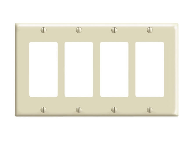 Leviton 80412-I Wallplate, 4-1/2 in L, 8.19 in W, 4-Gang, Plastic, Ivory