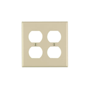 Leviton 86016 Receptacle Wallplate, 4-1/2 in L, 4-9/16 in W, 2 -Gang, Thermoset Plastic, Ivory, Smooth