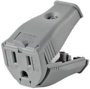 Leviton 3W102-GY Straight Blade Connector, 2-Pole, 15 A, 125 V, Female, NEMA: 5-15R, Gray
