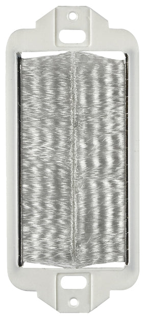 The Decora brush passthrough insert offers a clean, professional appearance when cable needs to pass through a wall opening. The white fibers of the brush protect the cables and close the opening to provide an aesthetically pleasing look. The brush insert installs on standard NEMA electrical boxes and low-voltage brackets. Single or multi-gang Leviton Decora wallplates (sold separately) complete the installation. Use for home theater, classroom or conference room audiovisual installations.