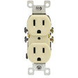 Leviton Duplex Receptacle, 125 V, 15 A, Frequency Rating: 60 Hz, Number of Poles: 2, Number of Wires: 3, Wiring Type: Push-In, Side, Wire Size: 14 AWG, NEMA Configuration: 5-15R, Wall Mounting, Thermoplastic, Ivory, Dimensions: 4.06 in L x 1.33 in W x 0.94 in D