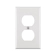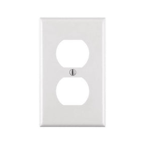 Leviton Receptacle Wallplate, Duplex, Standard-Size, 1 Gangs, Flush Mounting, Plastic, White, Smooth, 4-1/2 in Length, 2-3/4 in Width, 0.22 in Thickness, Suitable for: Traditional Switches and Outlets, Includes: Metal Mounting Screws