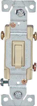 For direct connection to aluminum or copper wire. Longer, wider strap provides 40% more contact area to wall board. Virtually eliminates floating installations. Industrial design cam action mechanism insures quiet switch action. Side wire terminals accept up to #10 solid or stranded wire. Terminal screws are backed out-ready for wiring. Combination slot/Phillips head mounting and terminal screws. 15 A, 120 V. UL listed.