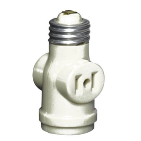 Leviton Keyless Adapter, 125 V, Wattage Rating: 660 W, Base Type: Medium, Number of Poles: 2, Number of Wires: 3, Enclosure Type: NEMA 1-15R, Terminal Type: Socket, Dimensions: 1.44 in Dia x 3.22 in L, Bakelite, Ivory