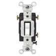 Leviton Toggle Switch, 120 V, 15 A, 1500 V Dielectric Strength, Quiet Actuator, -40 to 65 deg C, Wall Mounting, White, Dimensions: 4.06 in L x 1.31 in W x 1.03 in D