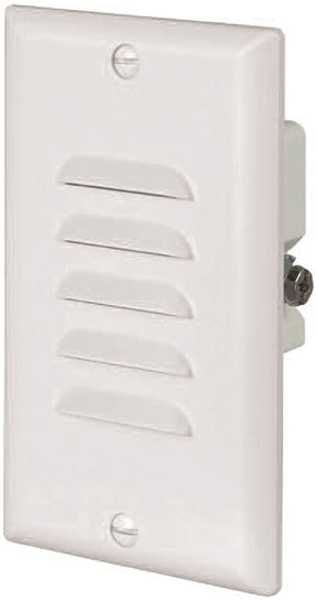 LED steplight provides wayfinding illumination in a discrete wallbox device. Vertical and horizontal louvered faceplates included for convenience and flexibility in application. Ideal for stairways, hallways, bathrooms or any location where path illumination is desired.
