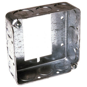 Raco Extension Box, Cable Entry: Knockout, Number of Knockouts: 12, Knockout Size: 1/2, 3/4 in, Number of Gangs: 2, Square, Cubic Capacity: 22-1/2 cu-in, Dimensions: 1.56 in L x 4 in W x 4 in H, Steel, Gray
