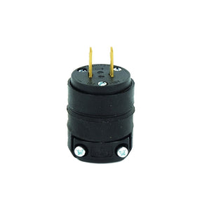 Leviton Electrical Plug, Non-Polarized, 125 V, 15 A, Number of Poles: 2, Number of Wires: 2, Cable/Wire Size: 15/64 to 21/32 in, Grounding Type: Non-Grounded, Operating Temperature: -40 to 65 deg C, Cord Mounting, TPE Rubber, Black, NEMA Configuration: NEMA 1-15P