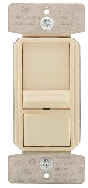 Eaton Slide Dimmer, 277 V, Frequency Rating: 60 Hz, Number of Poles: 1, Number of Phases: 1, Number of Gangs: 2, Flush Mounting, Terminal Type: Back and Side Wire, Temperature Rating: -4 to 158 deg F, Polycarbonate, Light Almond, Dimensions: 2.03 in L x 6.125 in W x 4.05 in H