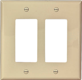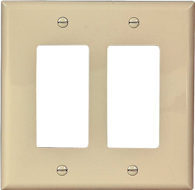 Eaton Wiring Devices PJ262V Wallplate, 4-1/2 in L, 4.56 in W, 2 -Gang, Polycarbonate, Ivory, High-Gloss