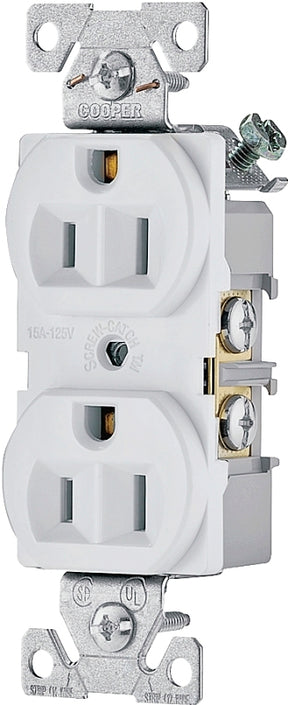 Eaton Wiring Devices 827W-BOX Duplex Receptacle, 2 -Pole, 15 A, 125 V, Side Wiring, NEMA: 5-15R, White