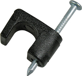 The 1/4 in black polyethylene coaxial staples 25-pack feature polyethylene saddles for durability and UV resistance. These staples are ideal for securing RG-59 and RG-6 coaxial cables and include zinc-plated nails that can be driven in with a hammer for quick and easy installation. 1 nail per staple for quick and easy installation.