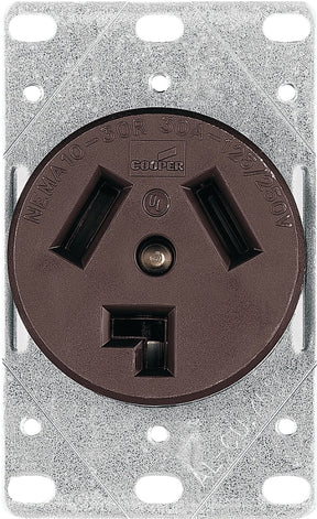 Eaton Cooper Wiring 38B-BOX Power Receptacle, 3 -Pole, 125/250 V, 30 A, NEMA: NEMA 10-30R, Brown