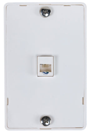 The Zenith universal wall phone jack with white finish is for surface mounting to a standard outlet box. The white trim provides a neutral cover for your spaces decor.