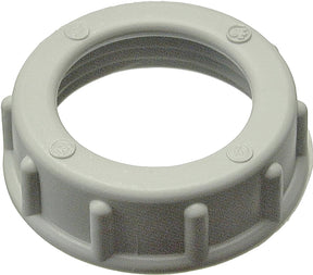 High-impact thermoplastic. Flame retardant to 105 deg C. Use with locknut to terminate threaded Rigid or IMC conduit to an outlet box. The rounded surface of the bushing prevents damage to wire insulation. Required by the NEC. UL listed and CSA approved.