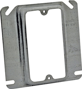 Raco Box Cover, Square, Number of Gangs: 1, Steel, Gray, 5/8 in L, 4 in W, 4 in H, Slot Mounting, Suitable for: Switch, 1.719 in Dia Receptacle, Includes: Hardware