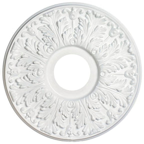 Add a charming accent to your interior decor with the Victorian white finish ceiling medallion. This medallion features a lovely Victorian-style pattern on a clean white finish. The simple installation of this medallion is a great way to hide a hole if an opening in the ceiling is cut too large. It can also hide ceiling blemishes and cracks that may appear around ceiling fans and lighting fixtures. The medallion is made of durable molded plastic.