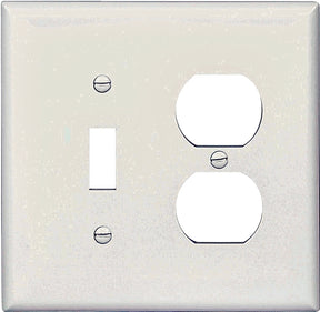 Eaton Wiring Devices PJ18W Combination Wallplate, 4-7/8 in L, 4-15/16 in W, Mid, 2-Gang, Polycarbonate, White, Screw