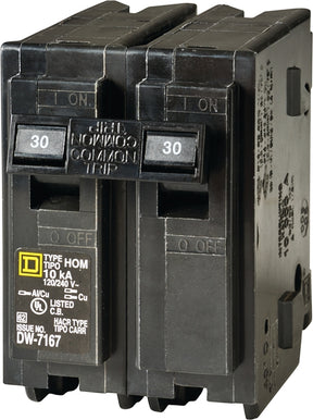 Square D Homeline HOM230C Circuit Breaker, Mini, 30 A, 2 -Pole, 120/240 V, Plug Mounting, Black