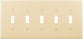 Eaton Wiring Devices PJ5V Wallplate, 10-1/2 in L, 4.88 in W, 5 -Gang, Polycarbonate, Ivory, High-Gloss
