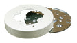Cover accepts fan bracket device with mounting centers of 3-3/16 in (81 mm). Base has six mounting holes and 4-1/2 in trade size KOs. #10 mounting studs provided. Rated for fans and fixtures up to 50 lb.