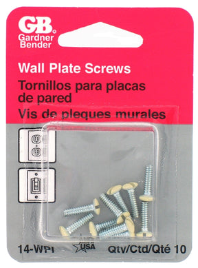 GB Screw Kit, Flat Head, 1/2 in Length, Ivory, Suitable for: Wallplates