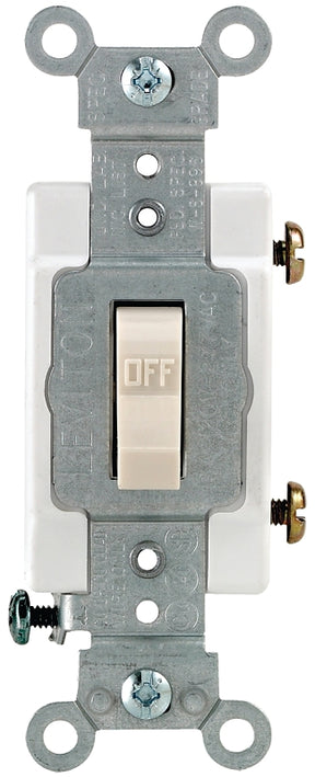 Leviton Switch, 120/277 V, 15 A, 0.5 to 2 hp Wattage, 1 Pole, Push-In Terminal, Toggle Actuator, Thermoplastic Housing Material, Light Almond, Dimensions: 4.06 in L x 1.31 in W