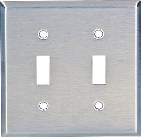 Wall plate is made of type 304 stainless steel alloy to be non-magnetic and corrosion resistant. Matching screws are provided. Brushed satin finish to resist fingerprints. Plates are 0.032 in thick. Standard size - 4.50 x 4.563 in, boxed.