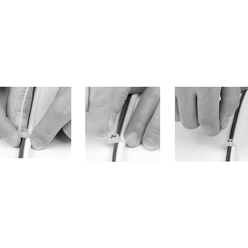Save time and frustration using the latest innovation from Gardner Bender; the self-cutting cable tie. Easy to use; simply lock-and-twist to finish the job, with no need for an additional cutting tool! Unlike other "twist" ties our patented design doesn't require a reduction in the strength and durability of the cable tie material or multiple rotations to achieve a break in the tie. Instead, a small cutting blade designed into the head of each tie ensures a tight lock and quick, clean cut, improving the appearance of the end result and virtually eliminating residual jagged edges which can bite into bare skin.
