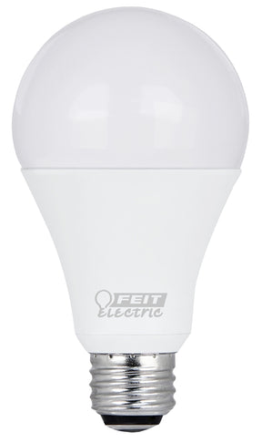 Enjoy all the benefits of advanced LED energy-saving technology with the Feit Electric A30/100/927CA 3-way 30/70/100 W A21 LED light bulbs. This 2700K soft white light is non-dimmable and will replace 30/70/100 W equivalent incandescent bulbs. It produces a similar light output (500/1050/1600 Lumens), uses 5/10/16 W of energy and up to 86% less energy than a standard incandescent light bulb. Get instant on to full brightness with relatively cool running performance. Feit Electric A21 bulbs have an average life of 25,000 hrs are RoHS compliant and 100% mercury-free. Choose a dependable track and recessed lighting bulb for residential or commercial applications.