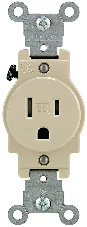 Leviton 132-T5015-00I Single Receptacle, 2 -Pole, 125 V, 15 A, Back and Side Wiring, NEMA: NEMA 5-15R, Ivory