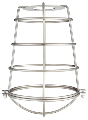 Evoking early industrial lighting, this brushed nickel industrial cage neckless shade adds a vintage touch to any decor. The shade features brushed nickel finish and elongated open metal cage design replicating the feel of classic vintage fixtures. Add this shade to introduce a timeless industrial edge to both antique or modern spaces.