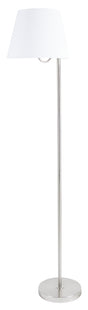 This floor lamp has a brushed nickel finish, white fabric shade and uses 1 x 100W maximum type A19 medium base bulb or 1 x 23 W CFL bulb (sold separately), 3-way lampholder switch. Size: 58 in overall height. cETL/ETL Listed.
