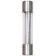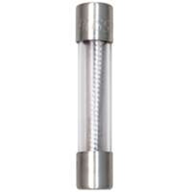 Glass tube. Plated brass end caps. 1/4 in x 1-1/4 in. 250 VAC rating maximum. UL listed.