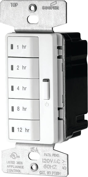 Eaton Wiring Devices PT18H-W-K Hour Timer, 15 A, 120 V, 1800 W, 1, 2, 4, 8, 12 hr Off Time Setting, White